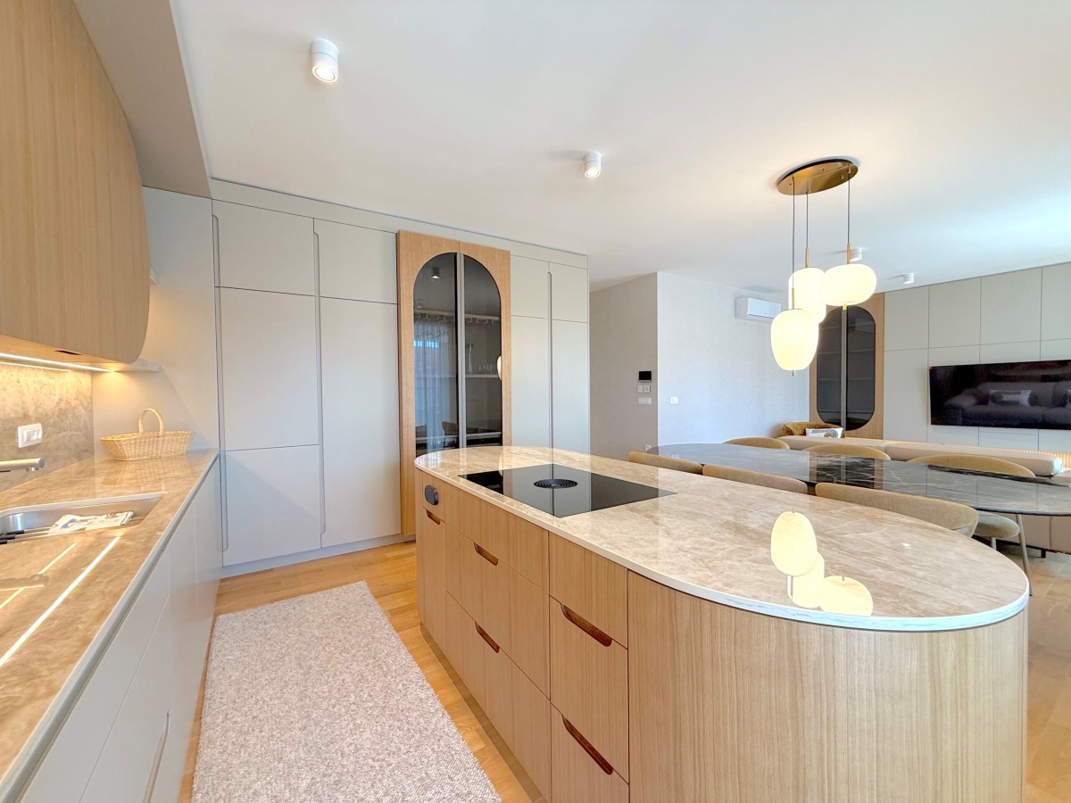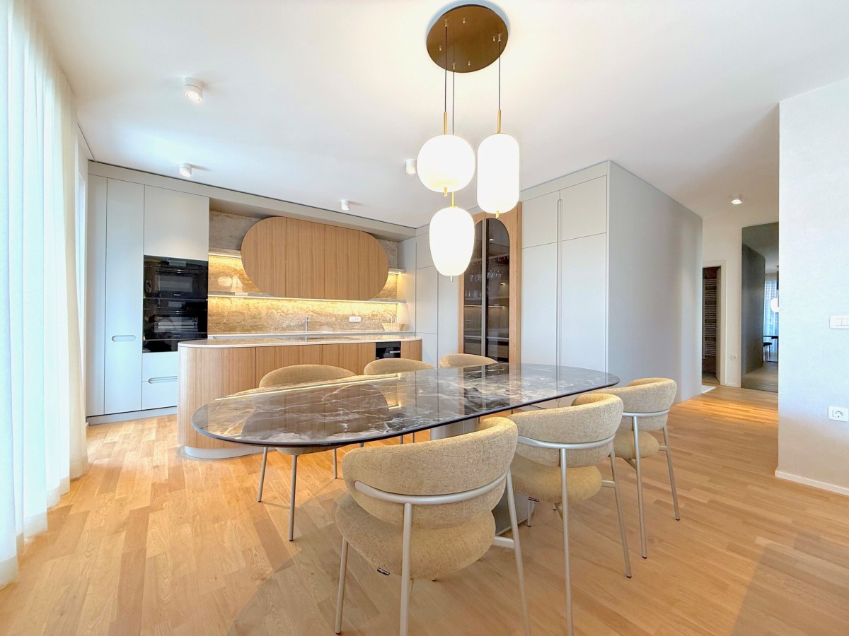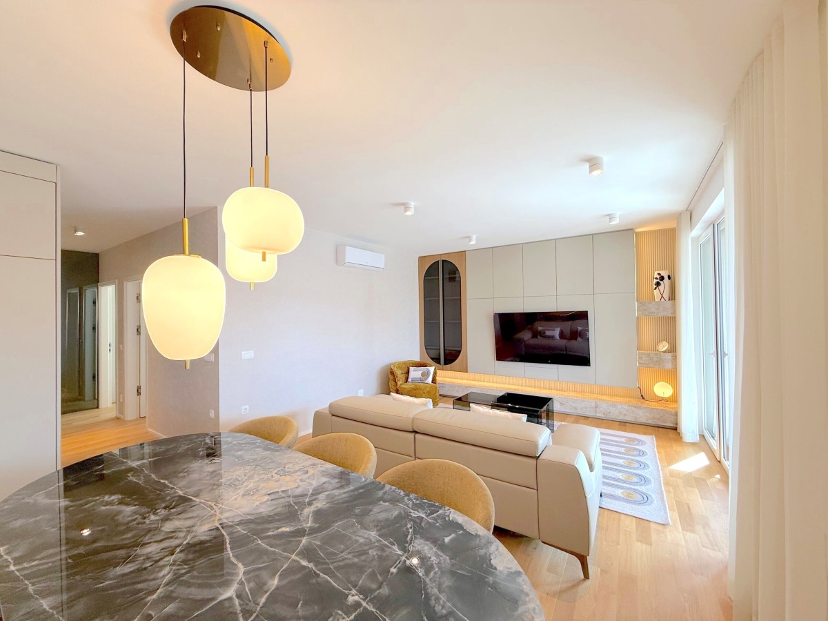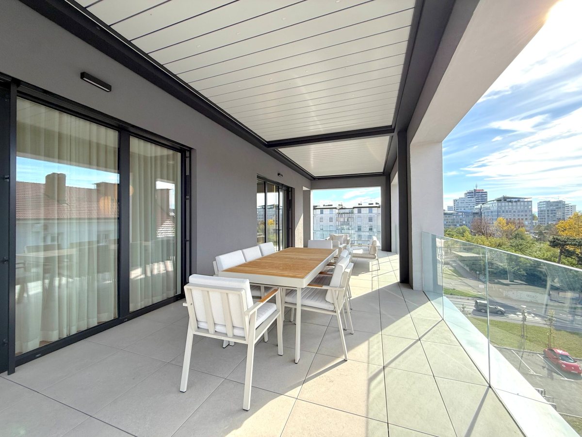 Located on the top 5th floor with open views of Ljubljana, the apartment has a total area of 148.4 m², of which 87.3 m² is living space. This space is complemented by a spacious 40.8 m² terrace and a 15.9 m² balcony.