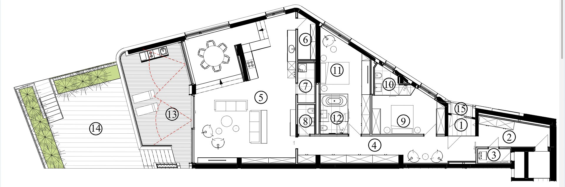Резиденция включает 6 уровней и 7 отдельных апартаментов с открытыми террасами и видом на море и подземный этаж.